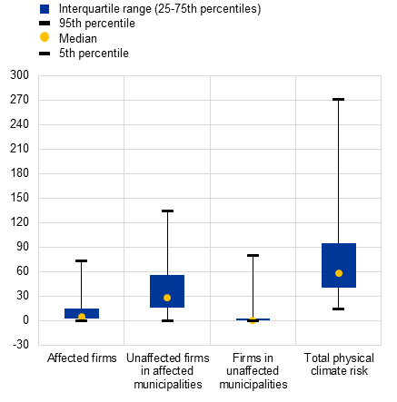 Share of affected firms by municipality and shares of firms by type of exposure to physical risk