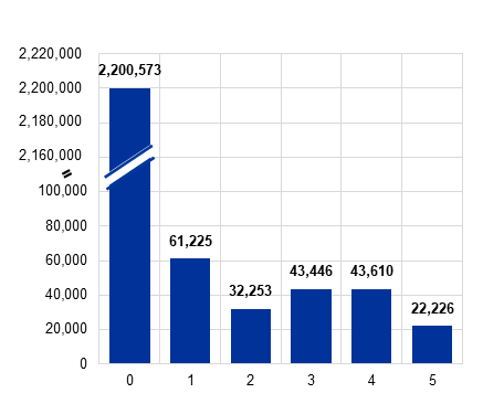 A credible assessment of the impact of acute physical risk scenarios should be conducted at a granular level, however, to capture their local nature. Physical risk exposure from river flooding is highly concentrated in specific regions and affects a relatively small but significant subset of firms in the euro area. The physical risk score measures each borrower’s exposure to river flooding for the period 2021-50 under the RCP 4.5 scenario, ranging from 0 (low risk) to 5 (very high risk). As shown in Chart A, panel a), while most firms in the sample exhibit low exposure to physical risk (score 0), a substantial number face moderate to high risk, with more than 22,000 falling into the highest risk category (score 5).